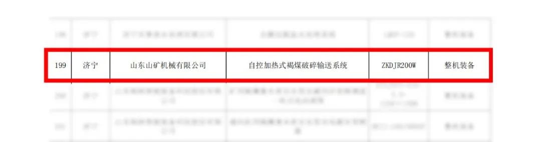 近日,山东省工业和信息化厅公布了《2024年度山东省首台(套)技术装备生产企业及产品名单》,山东山矿机械有限公司自主研发生产的ZKDJR200W自控加热式褐煤破碎输送系统荣获2024年度山东省首台(套)技术装备。