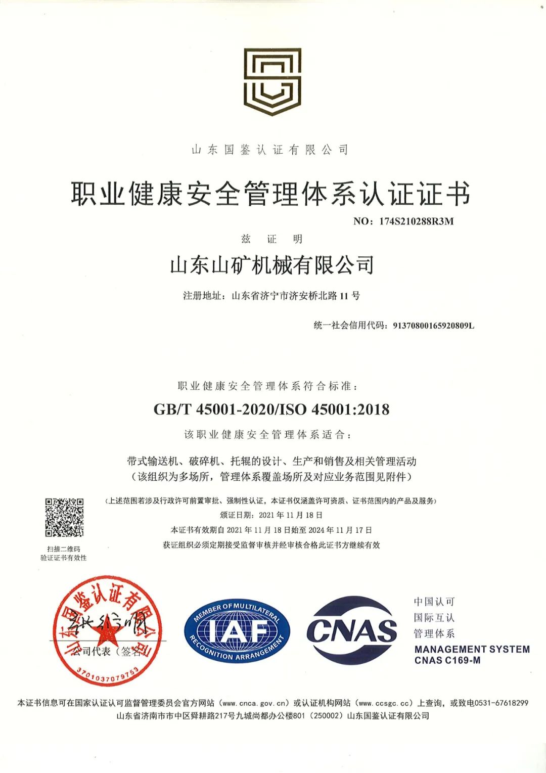 2023年10月11日至13日,由山东国鉴认证中心三名专家组成的审核组对山东山矿机械有限公司ISO9001质量体系、ISO14001环境体系和ISO45001职业健康安全管理体系进行了现场审核,山矿公司顺利通过ISO“三体系”年度监督审核。