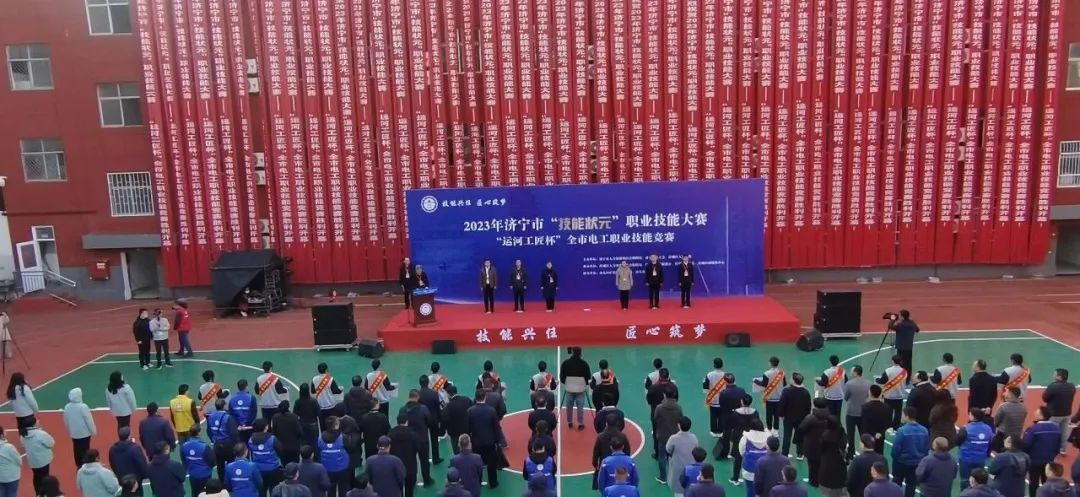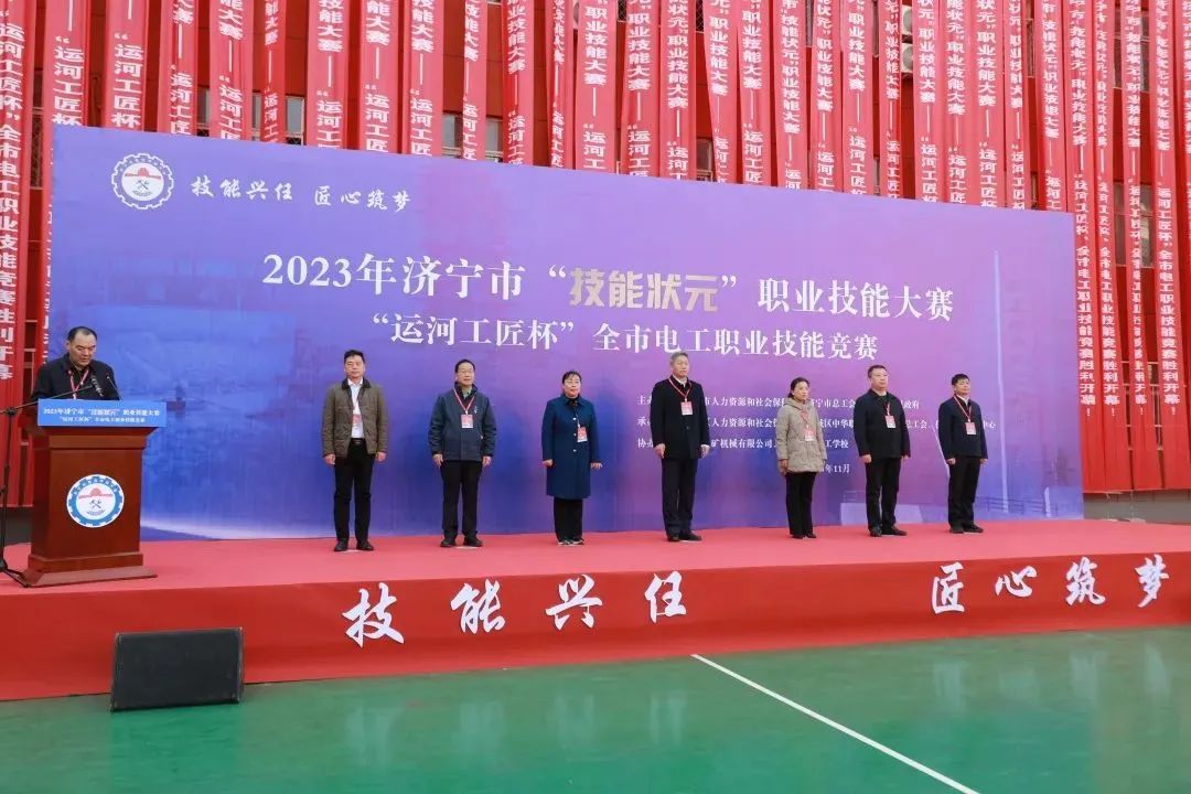 11月15日--16日,2023年济宁市“技能状元”职业技能大赛——“运河工匠杯“全市电工职业技能竞赛在山东山矿机械有限公司、山东山矿技工学校成功举办。本次竞赛为我市一类职业技能竞赛,由济宁市人力资源和社会保障局、济宁市总工会、任城区人民政府共同主办,山东山矿机械有限公司、山东山矿技工学校协办。开幕式由区委常委、常务副区长金平同志主持,区委副书记、区长宋华东同志出席开幕式并致辞,市人社局党组成员、副局长张慧慧同志发表讲话并宣布大赛开赛,山东山矿机械有限公司党委书记、董事长孙善金同志向大会致辞。市、区有关部门主要负责同志,各县市区人社局负责同志、参赛选手和山东山矿技工学校全体教职工参加了大赛开幕式。