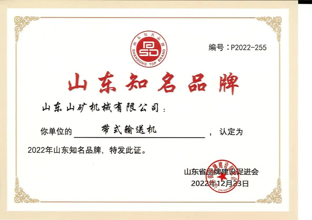 此外,山矿公司主导产品“带式输送机”荣获2022年山东知名品牌(产品)。