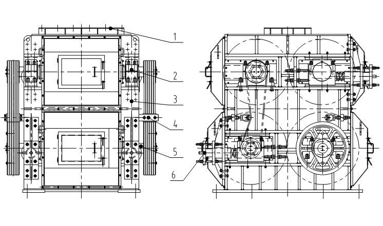 5.1.1 四齿辊破碎机主机结构形式见图。此图不确定具体结构