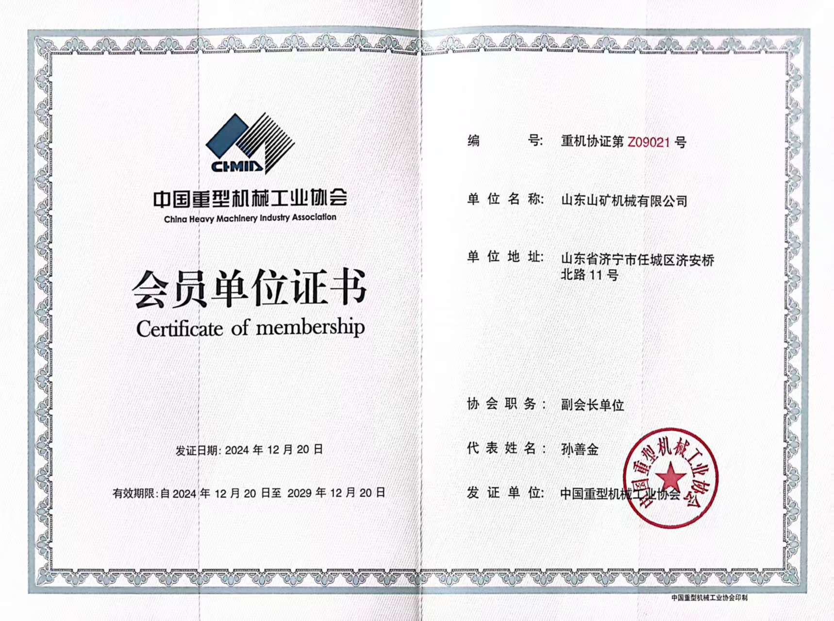 山东山矿机械有限公司成功当选中国重型机械工业协会副会长单位丨中国重型机械工业协会第九届会员代表大会暨九届一次理事会胜利召开