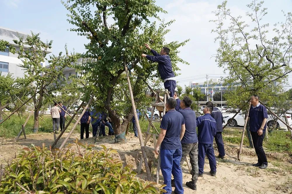 正值公司果园杏树丰收季节,沉甸甸的果实挂满枝头,散发着诱人的香味。会前,公司党委副书记、工会主席江心田和劳模同志们一起走进果园,开展了一场欢声笑语的采摘活动,并一起分享了劳动成果。