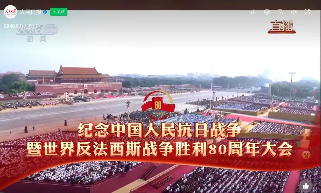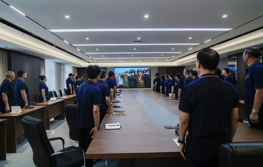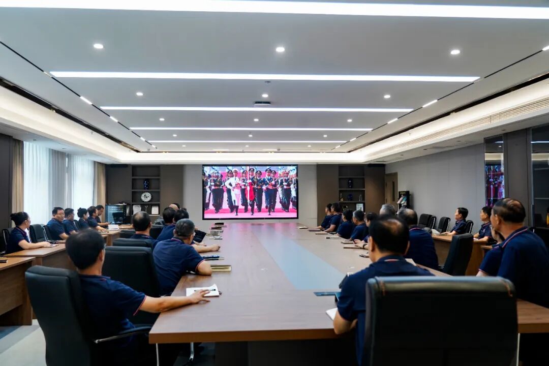 【概要描述】 2025年9月3日,纪念中国人民抗日战争暨世界反法西斯战争胜利80周年阅兵式,在北京天安门广场隆重举行。为激发党员干部的爱国热情,增强民族自豪感和责任感,公司党委组织部分党员、干部集中观看了阅兵式直播,共同见证这一神圣而激动人心的时刻。公司党委书记、董事长孙善金同志与大家一起观看了阅兵式。