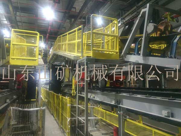一:本卸料车为三组车轮结构,驱动平台及尾架平台通过铰连接,解决了三点不同线的问题:并且在运输过程中可以通过拆卸铰轴的方式把整台卸料车分为两部分(头部驱动部及尾部平台),运输方便,节约了运输成本;