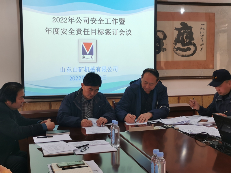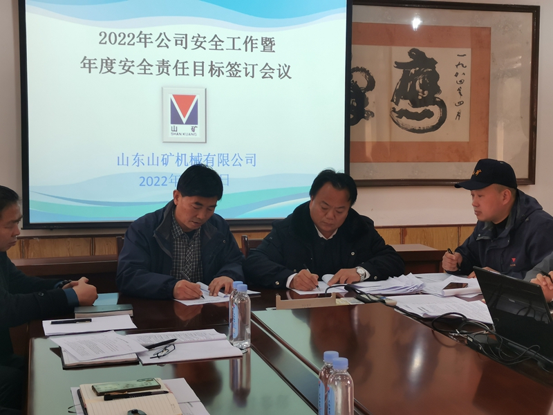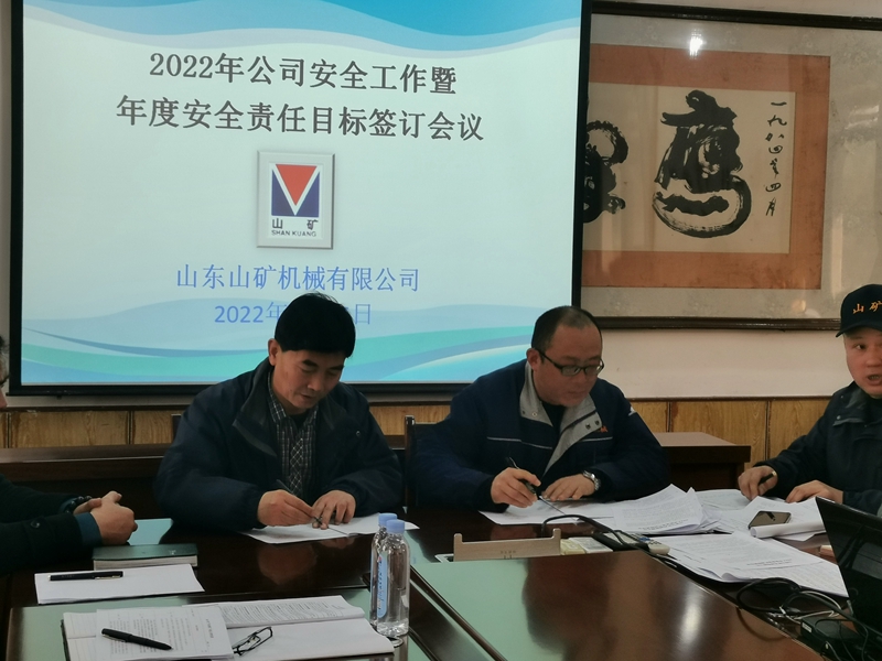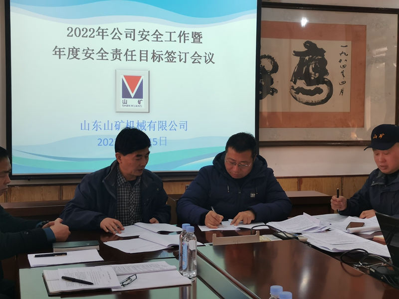 为全面总结公司年度安全生产工作,进一步落实企业安全生产主体责任,增强全员安全意识,切实防范安全事故的发生,确保新的一年生产安全,1月15日上午,山东山矿机械有限公司召开安全生产工作专题会议,公司董事长、总经理孙善金主持会议,并就安全生产工作作出重要指示,公司副总经理、部门及车间负责人参加会议。会议在全面总结2021年度安全生产工作的同时,对2022年安全管理目标、工作重点和推进举措进行细化部署,王兆立副总经理与各车间、职能部门主要负责人签订了2022年安全生产目标责任书,为新一年度安全管理提质升级保驾护航。