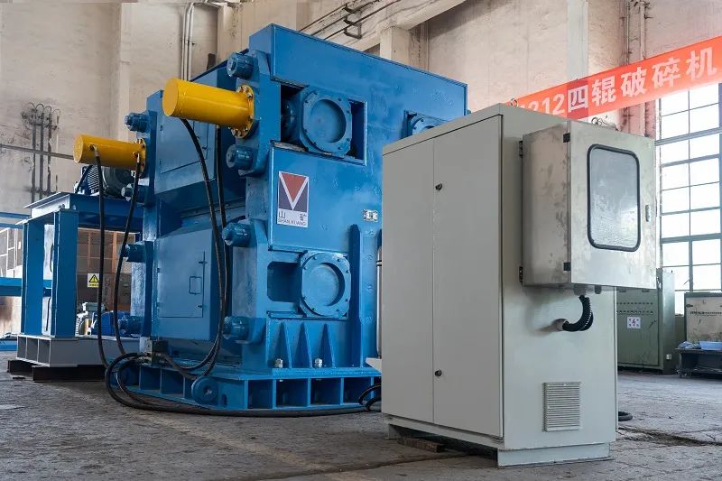 4PG1212四辊破碎机为液压调整的四辊破碎机,主要由电机、减速机、固动辊部、活动辊部、机架体部、机罩部、液压泵站及液压调整部、切削装置、安全防护罩等部分组成,辊子直径为1200mm,棍子长度为1200mm,给料力度≤25mm,出料粒度≤3mm,产量约为70t/h,具有结构紧凑、使用寿命长、破碎比大、产量较高和排料粒度大小可调等优点,广泛应用于冶金行业用于焦炭、无烟煤等细碎破碎。