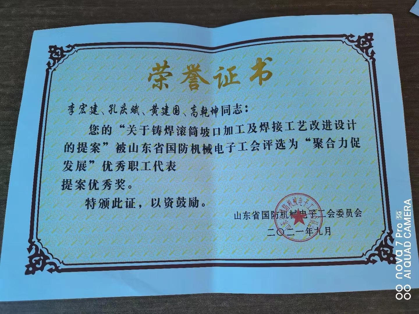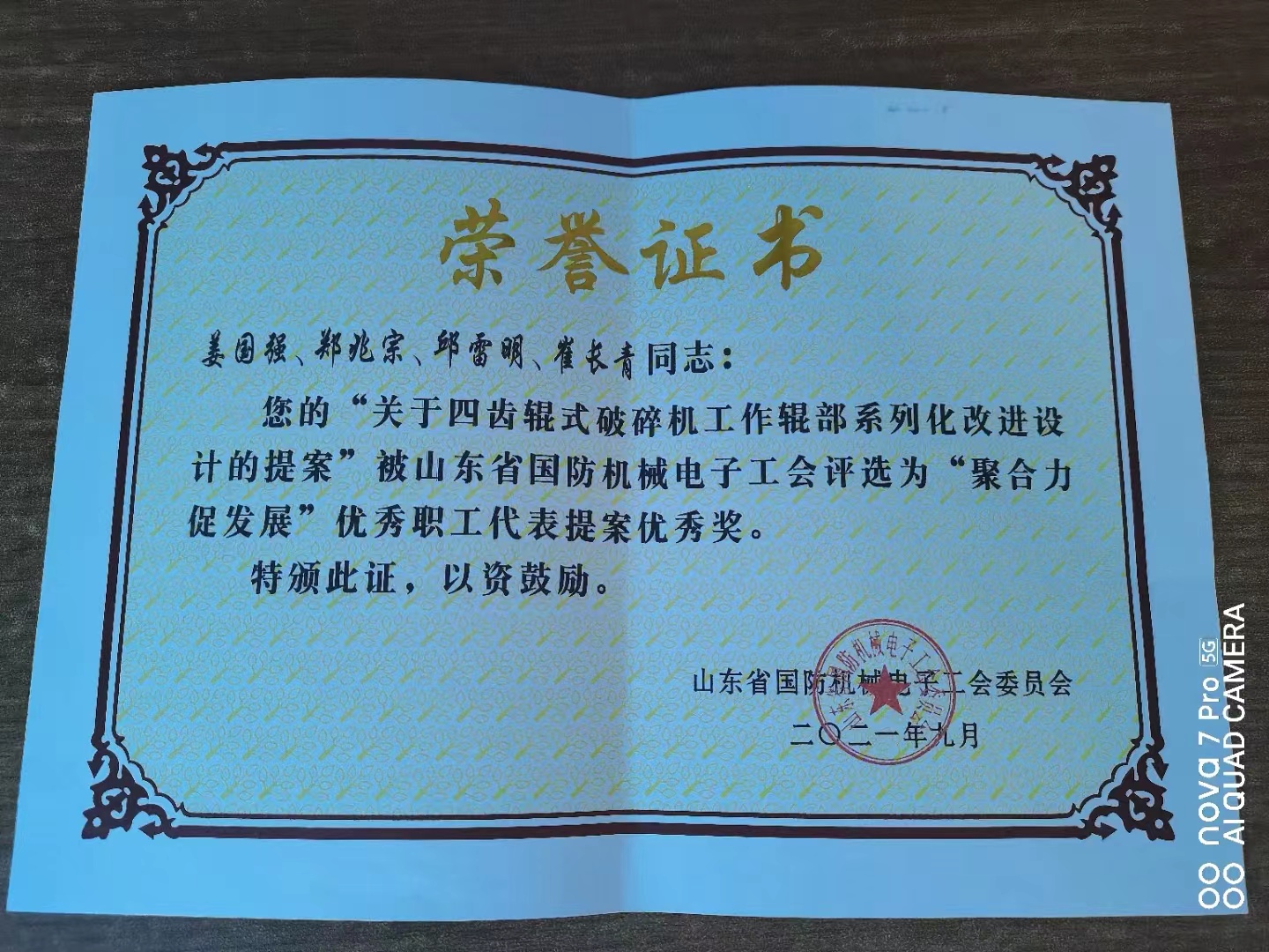 刘冬生导师工作室被山东省国防机械电子工会评为“劳模和工匠人才创新工作室”。