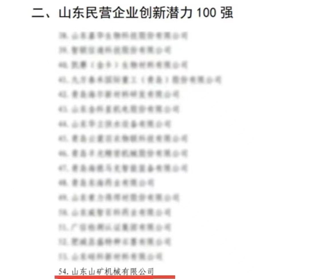 山矿公司被山东省工商业联合会授予“山东民营企业创新潜力100强”荣誉称号。