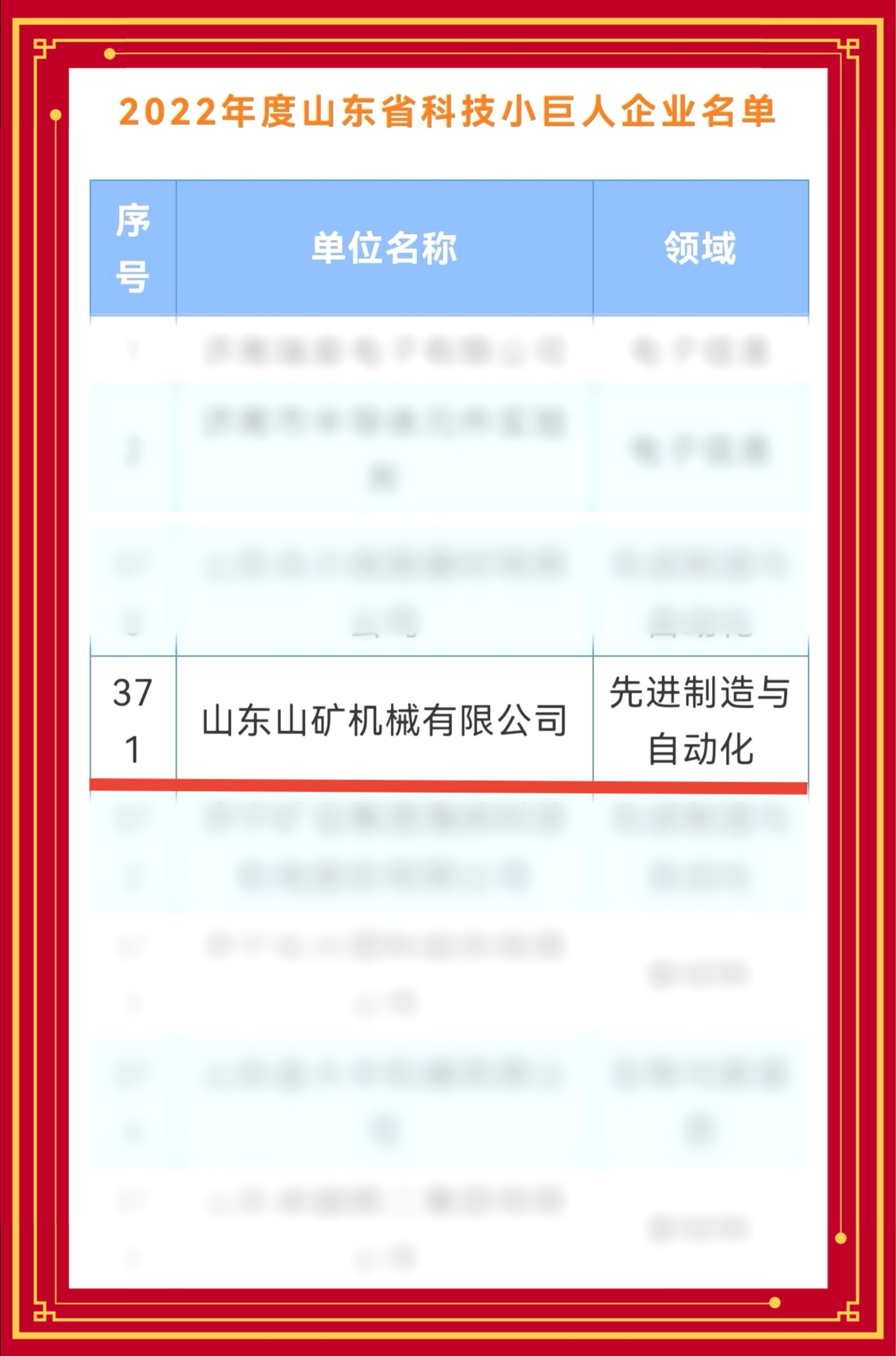 喜报!山东山矿机械有限公司成功入选2022年度山东省首批科技小巨人企业!
