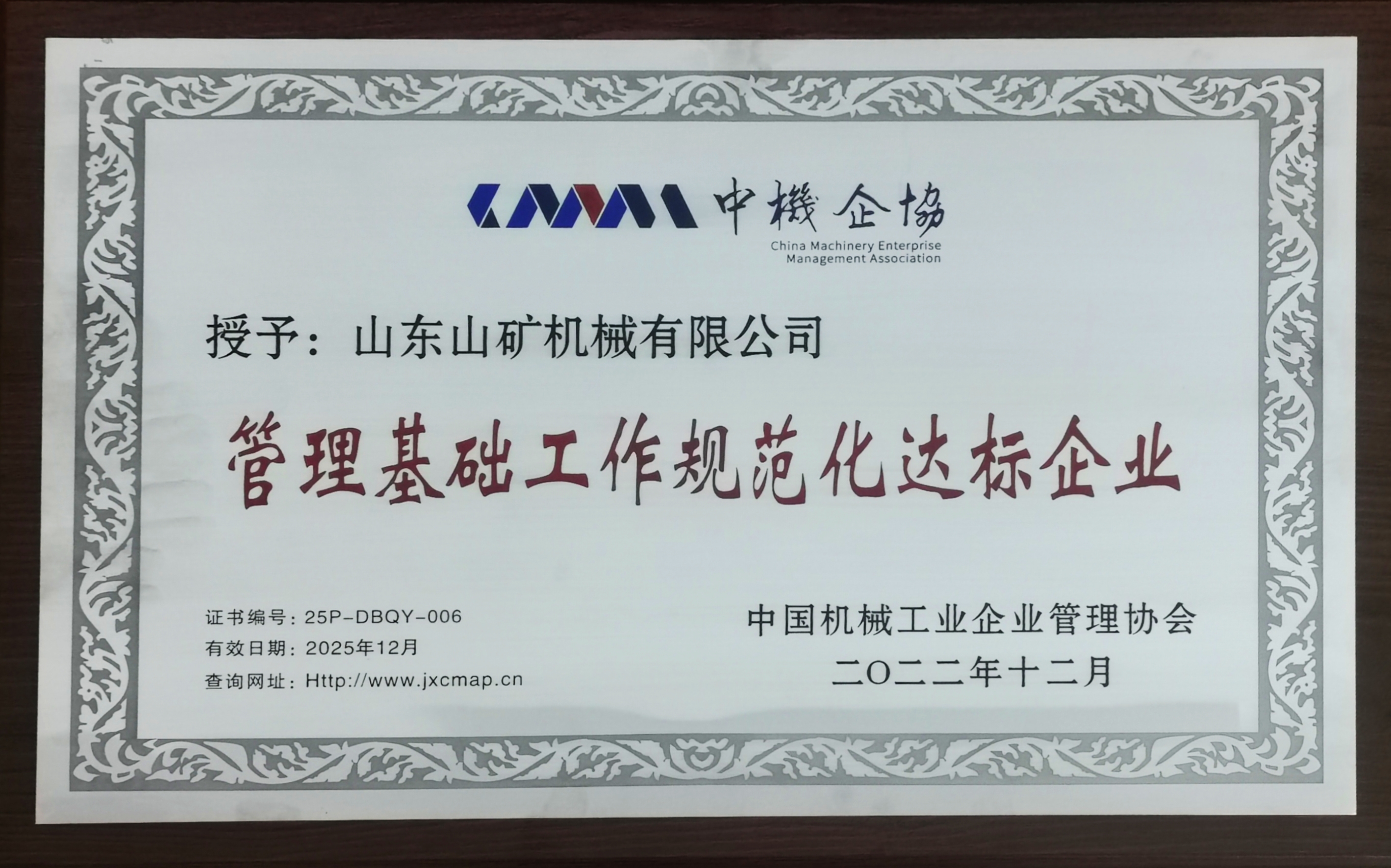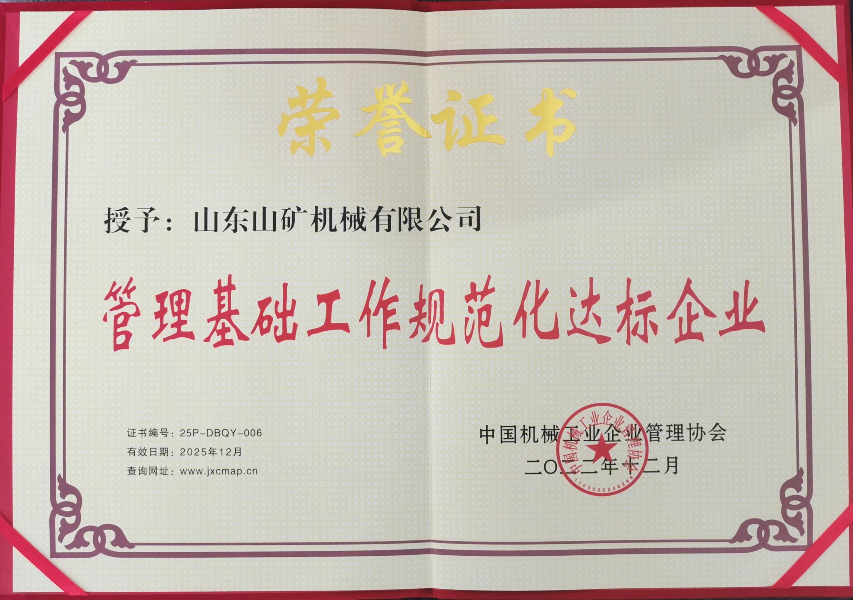喜报!山矿公司荣获“中国机械工业管理基础工作规范化达标企业”称号!董事长孙善金荣获“中国机械工业优秀(开拓)企业家”称号!
