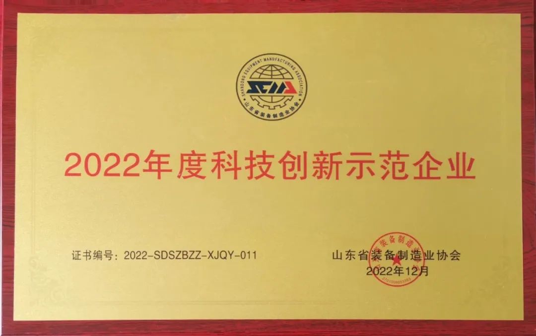 山东山矿机械有限公司获评“2022年度科技创新示范企业”。